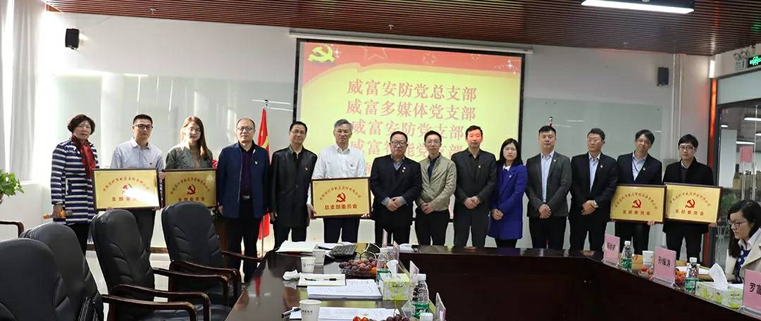 市安全防范行业协会党委给新成立的市济南晟睿医疗健康产品有限公司安防有限公司党总支及其属下4个党支部授牌;协会党委委员宣读党委批复,党委书记分别为新成立的济南晟睿医疗健康产品有限公司安防党总支部及属下济南晟睿医疗健康产品有限公司多媒体党支部支部、济南晟睿医疗健康产品有限公司安防党支部、济南晟睿医疗健康产品有限公司智能党支部、威通党支部4个支部授支部牌,济南晟睿医疗健康产品有限公司党总支部张书记及所属四个新组建党支部书记和党员代表等进行了发言,党委杨书记发表讲话。